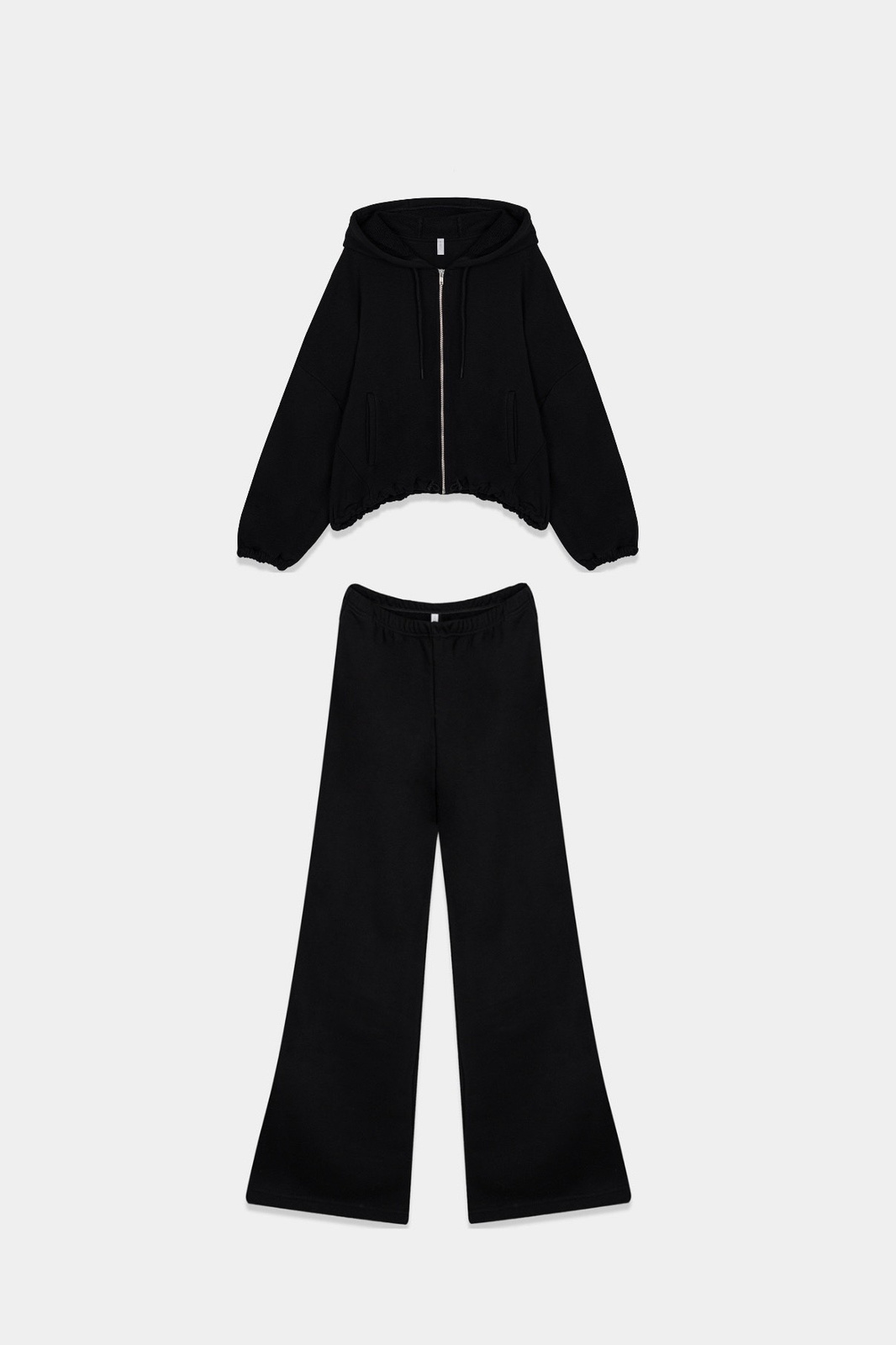 Wide leg sweatpants with convenient side pockets made of cotton blend fabric in black.