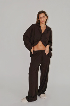Wide-leg pajama bottoms in brown, made of very soft, elastic viscose blend.