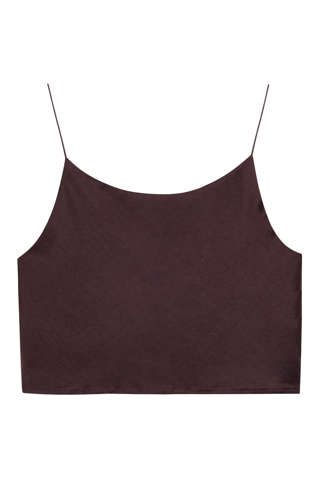 Short, strappy top, made of high-quality fabric in brown.