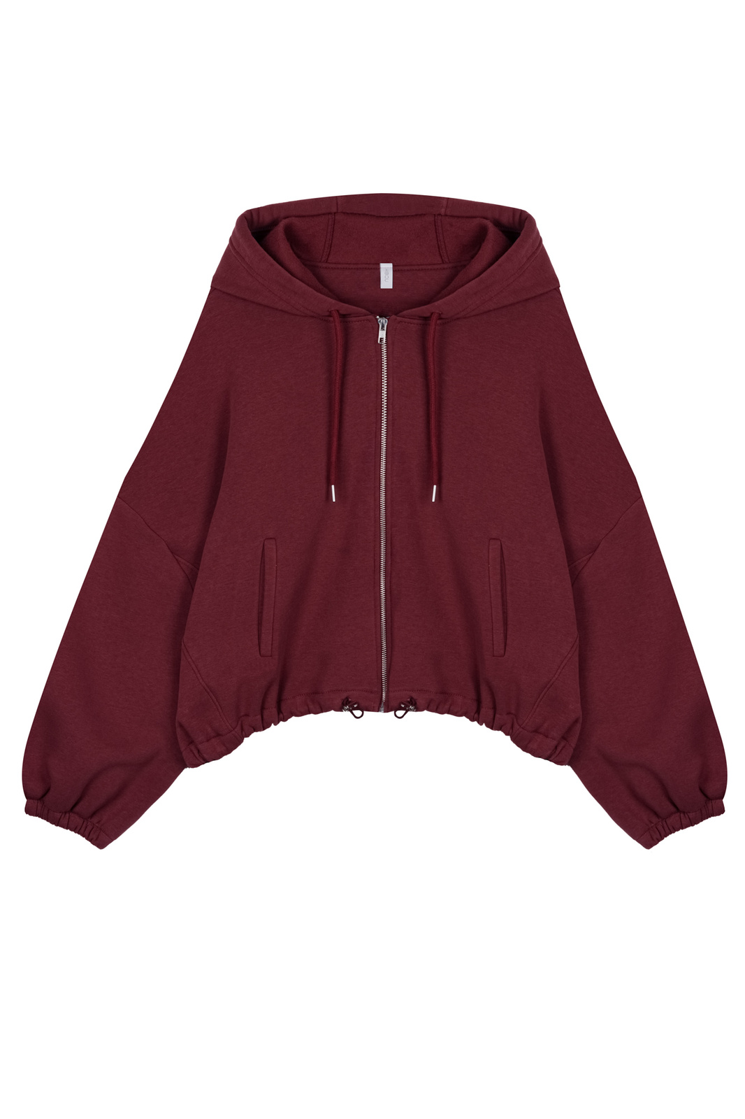 Oversized zipped hoodie made of soft cotton blend with fleece in burgundy.