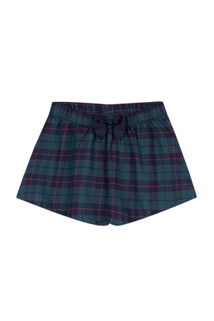 Sleep shorts, made of green and navy checkered, 100% cotton fabric.