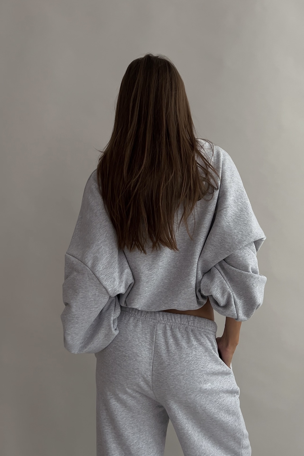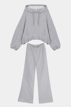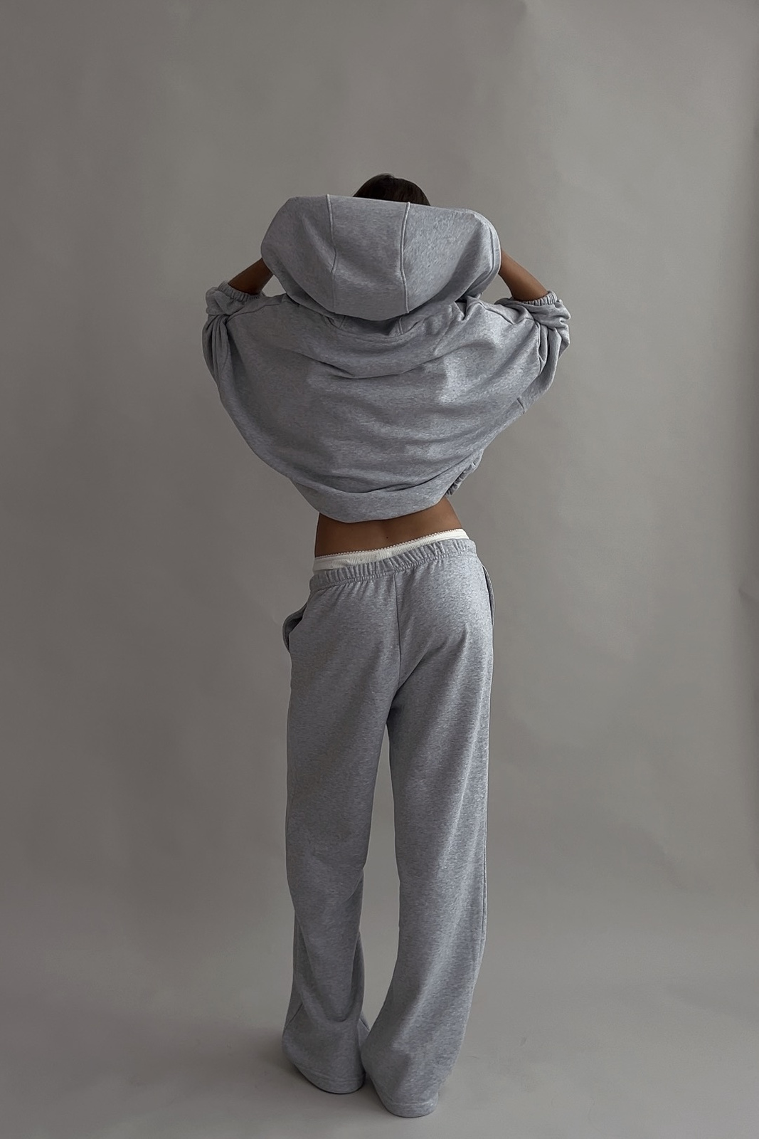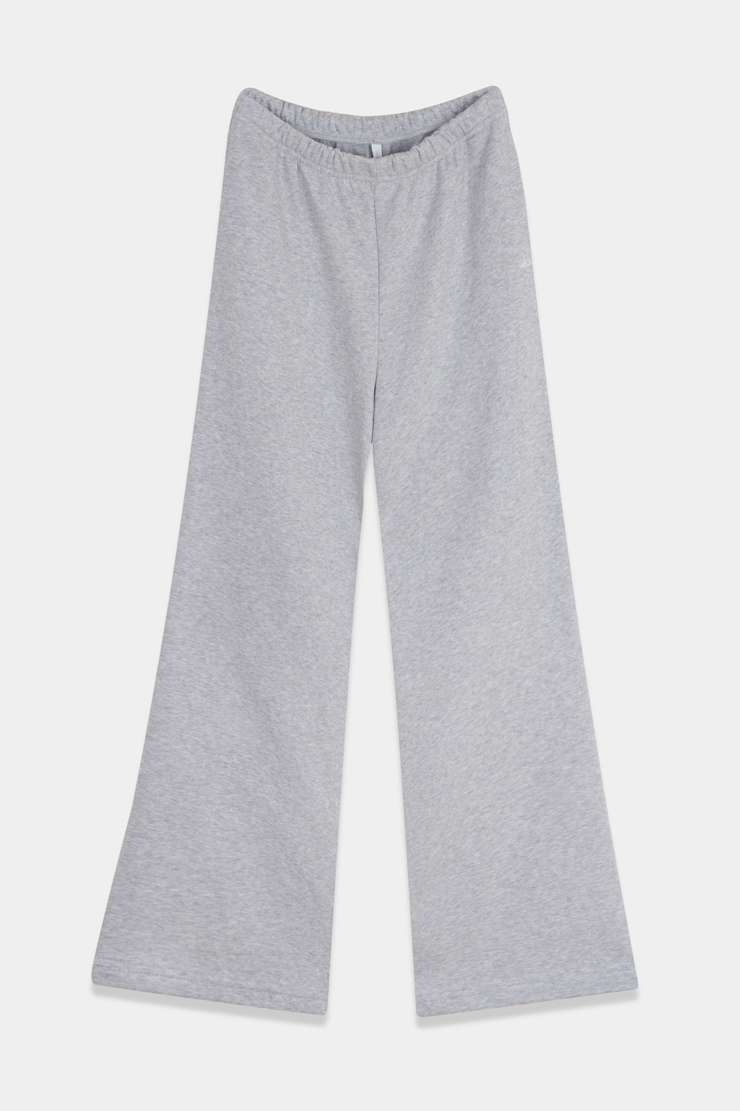 Wide leg sweatpants with convenient side pockets made of cotton blend fabric in grey melange.