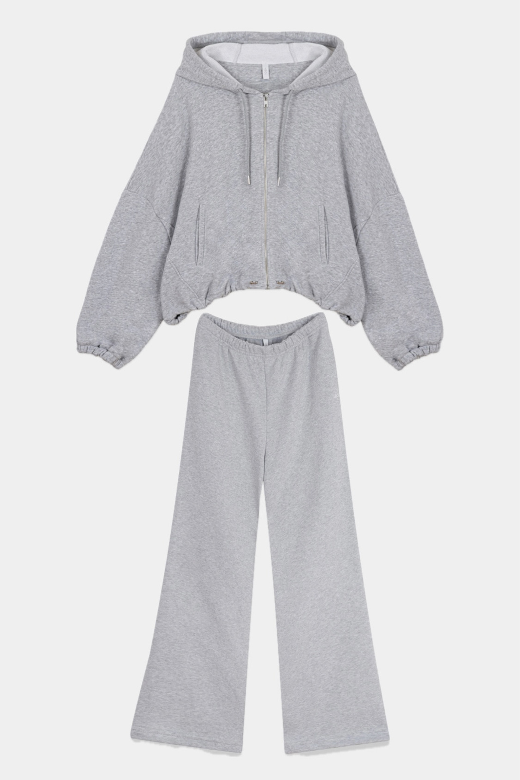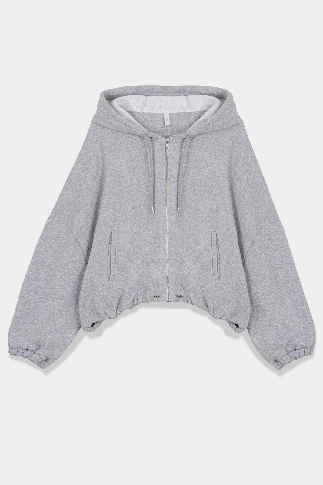 Oversized zipped hoodie made of soft cotton blend in grey melange.