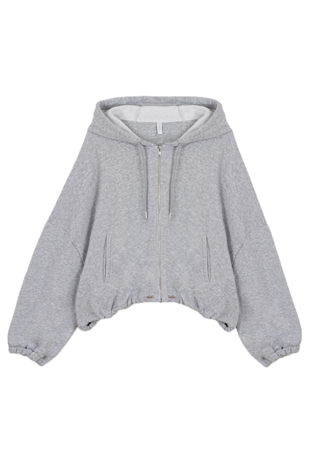 Oversized zipped hoodie made of soft cotton blend with fleece in grey melange.