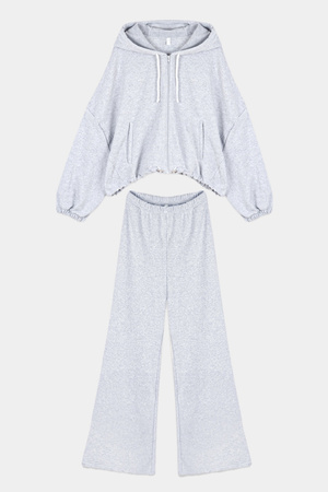 Wide leg sweatpants with convenient side pockets made of cotton blend fabric in light melange.