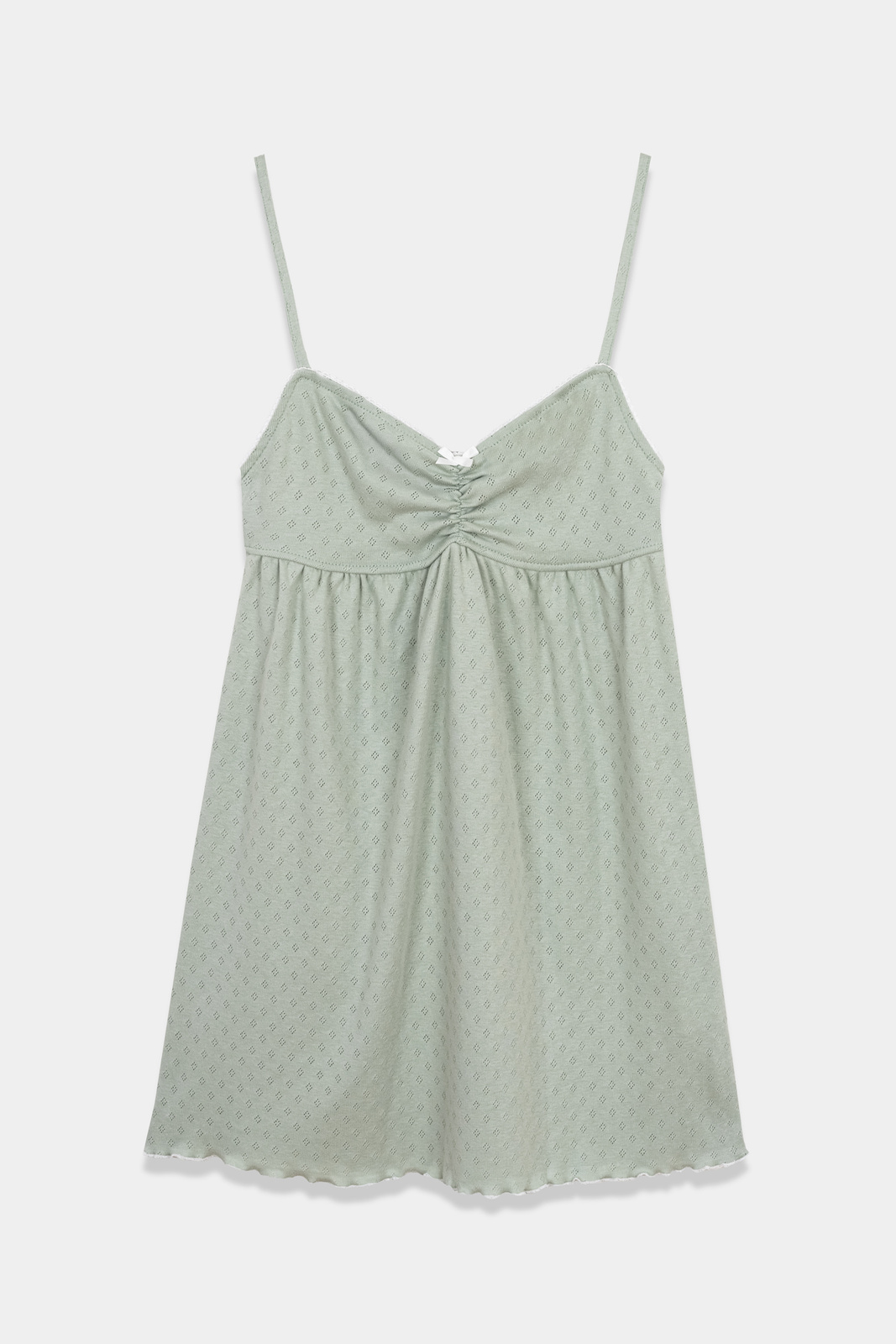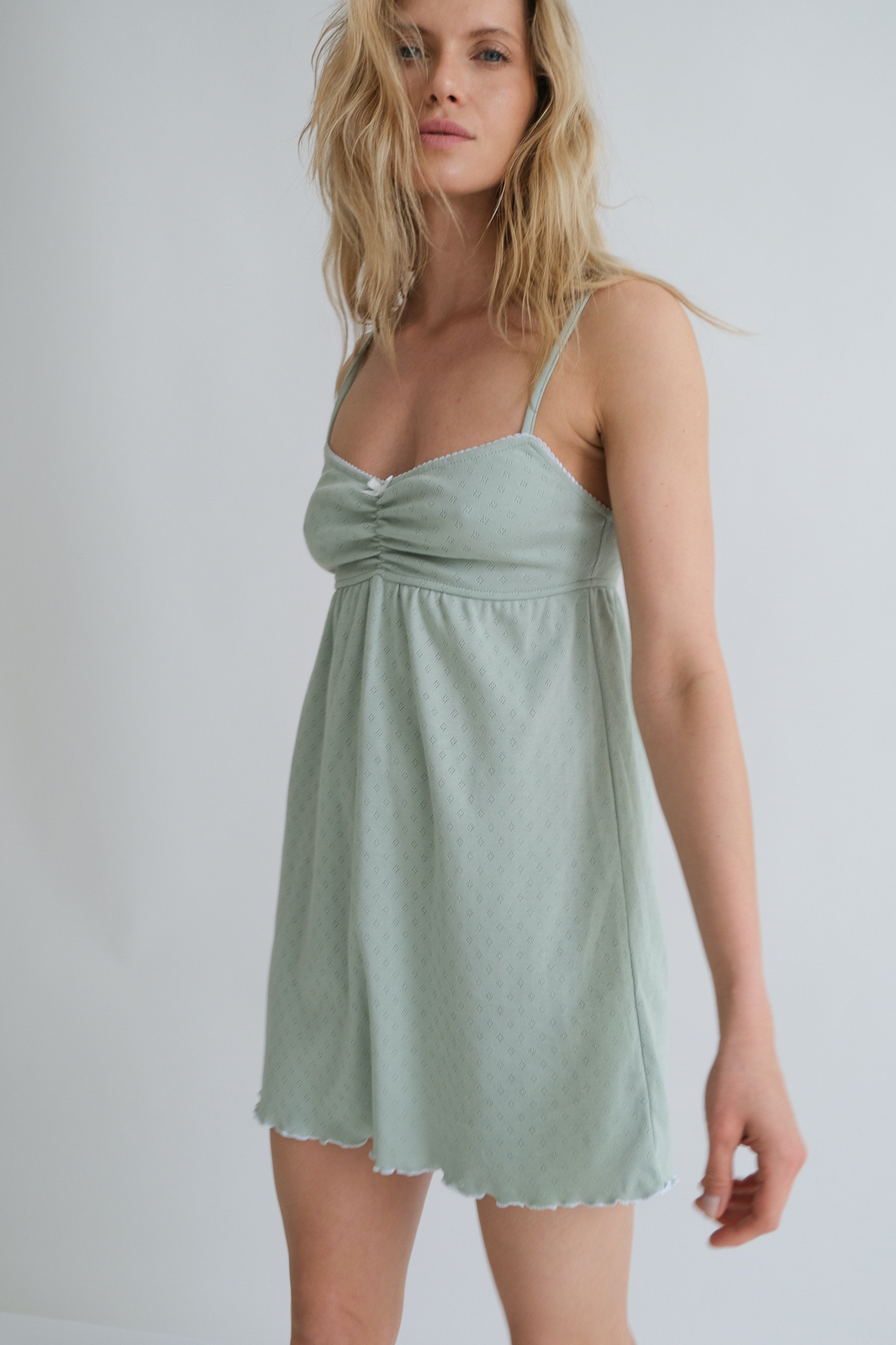 A-line, strappy babydoll dress made of very soft ponitelle jersey in pistachio green colour.