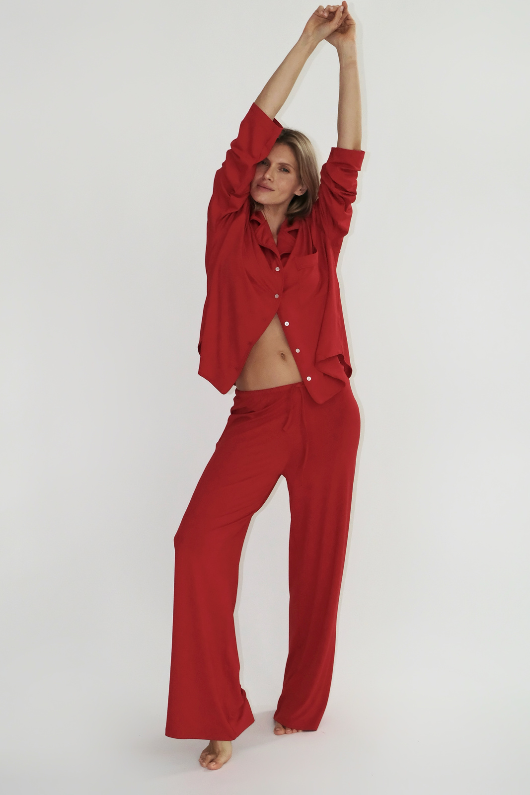 Wide-leg pajama bottoms in red, made of super soft fabric.